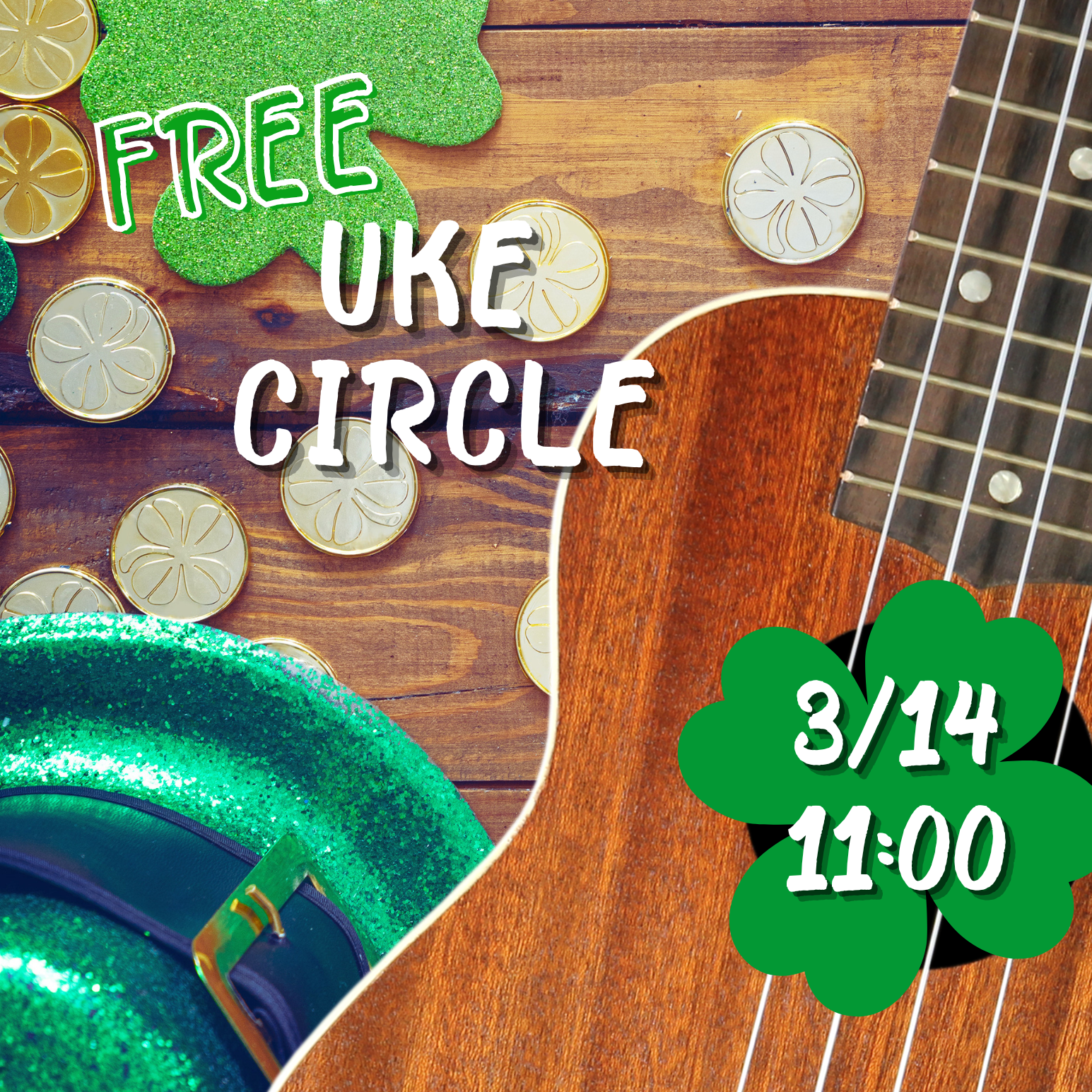 Ready to make some musical mischief! Get ready to strum your way into the luckiest jam of the year. Our free St. Patrick’s Day Ukulele Circle is gathering all mischievous music‑makers, toe‑tappers, and strummers for an hour of pure, shamrock‑powered fun.
