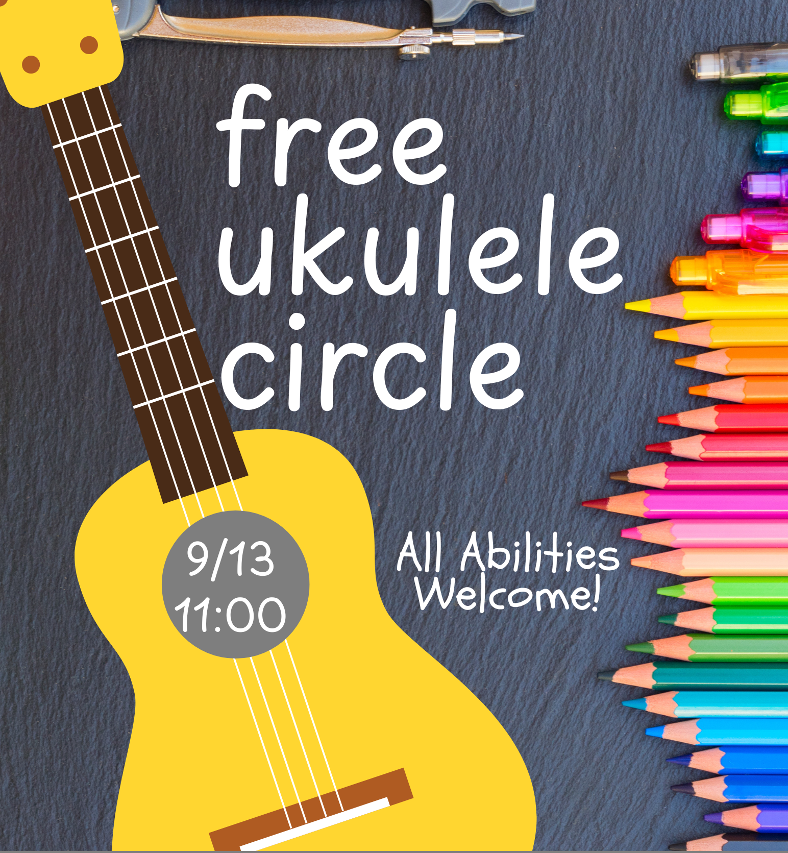 Strum Into the School Year with rhythm and style at our FREE Ukulele Workshop! Whether you're brand-new to the ukulele, need a refresher, or just want to hang out with fellow ukers, this upbeat event will help you find your groove. Instruments provided if needed!